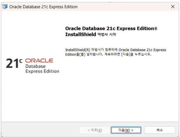 버전 선택 및 다운로드: Oracle Database 21c 또는 최신 버전을 선택하여 다운로드한다. 운영체제에 맞는 설치 파일을 선택해야 한다.