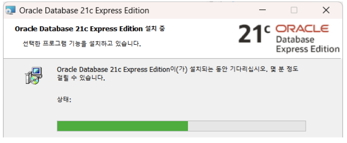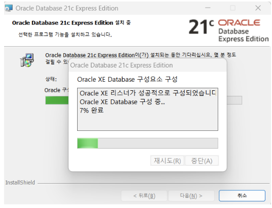 오라클 XE가 설치 홈 디렉토리를 확인한 후 설치 버튼을 클릭한다.