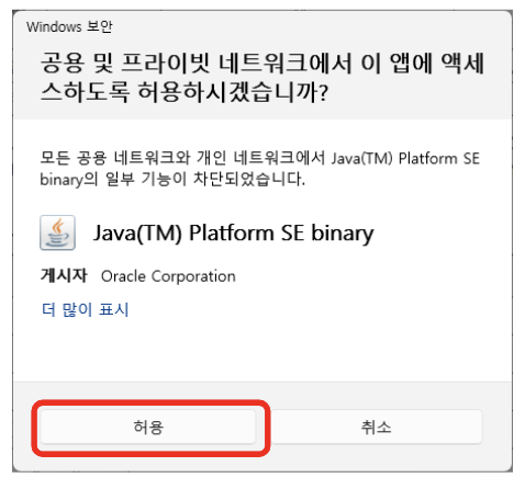 설치 중에 보안 관련 경고창이 뜨면 허용 버튼을 클릭한다.