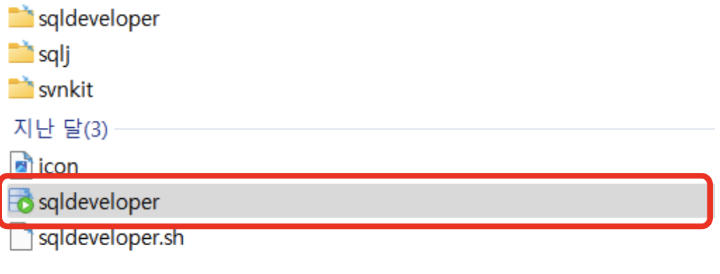 다운로드 받은 파일의 압축을 푼다. 압축을 해제한 후 sqldeveloper.exe 파일을 클릭하면 SQL Developer가 바로 실행된다. 만약 JDK가 포함되지 않은 버전인 경우 JDK 경로를 별도로 입력해야 한다.